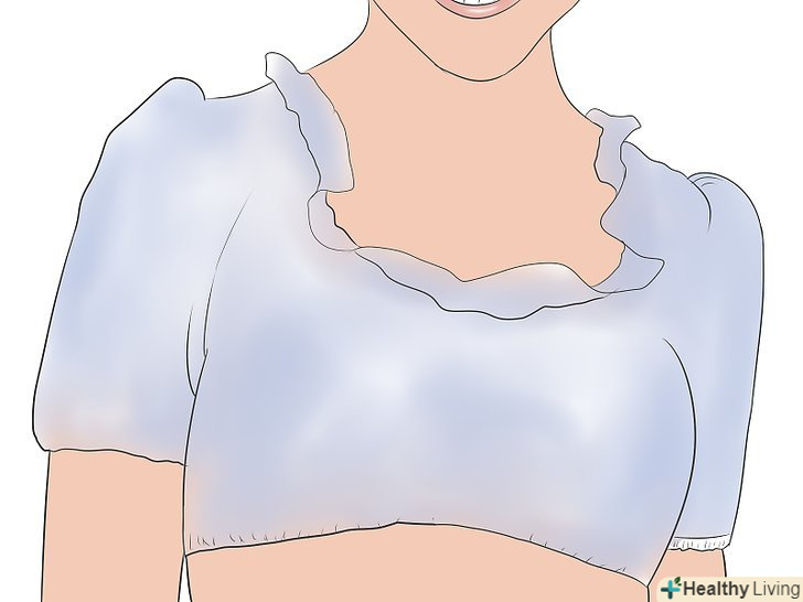 Одягніть сільську блузку, яка називається «тречтеблус». не вибирайте нічого з кнопками, і постарайтеся уникати блузок з декоративними орнаментами. Традиційні блузки з відносно неглибоким вирізом, але бувають і з глибоким, на випадок, якщо ви відчуваєте себе сміливіше. Одягніть сільську блузку, яка називається «тречтеблус». не вибирайте нічого з кнопками, і постарайтеся уникати блузок з декоративними орнаментами. Традиційні блузки з відносно неглибоким вирізом, але бувають і з глибоким, на випадок, якщо ви відчуваєте себе сміливіше.