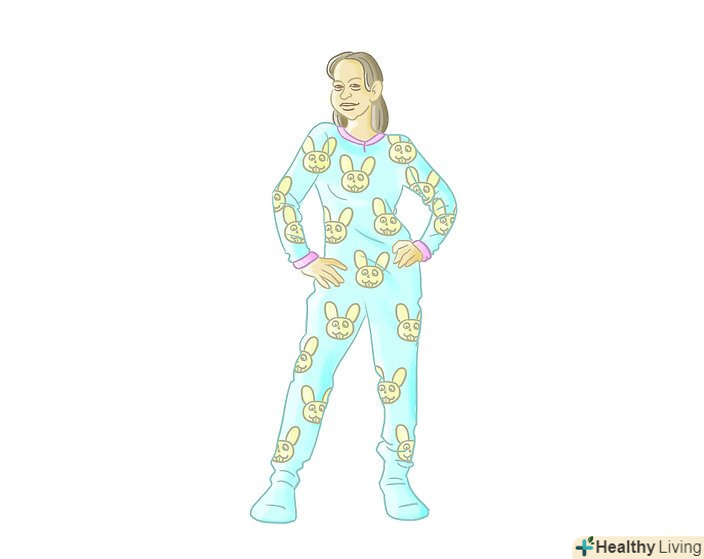 Виходьте в піжамі, яку ви вибрали. кращим видом є Footie піжами (іноді називають піжама-ковдру з ногами або просто піжама-ковдру), але будь-яка піжама робить дорослого схожим на дитину. Виходьте в піжамі, яку ви вибрали. кращим видом є Footie піжами (іноді називають піжама-ковдру з ногами або просто піжама-ковдру), але будь-яка піжама робить дорослого схожим на дитину.