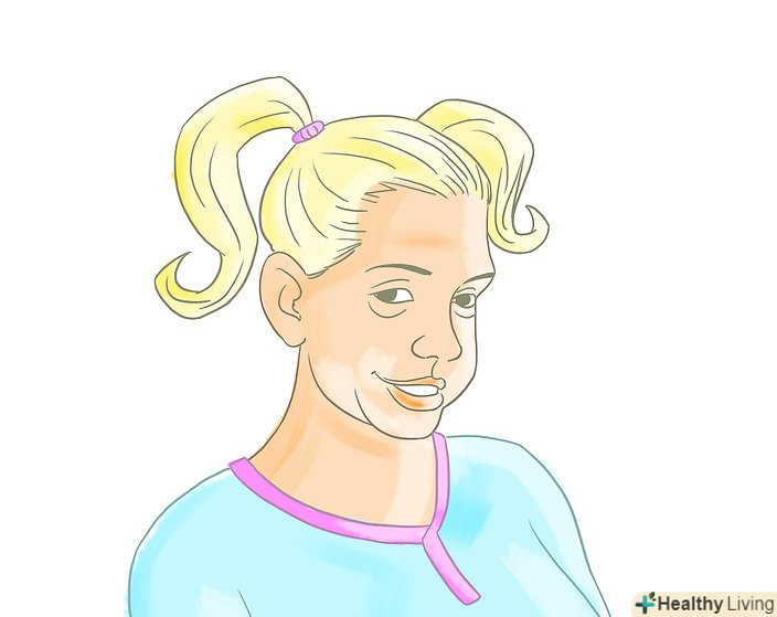 Зробіть дитячу зачіску. зазвичай немовлята рідко мають багато волосся на голові, але є кілька різних способів, щоб ваша зачіска відповідала костюму. Найпростіший варіант-надіти шапочку, яку ви також можете зробити самостійно. Зробіть дитячу зачіску. зазвичай немовлята рідко мають багато волосся на голові, але є кілька різних способів, щоб ваша зачіска відповідала костюму. Найпростіший варіант-надіти шапочку, яку ви також можете зробити самостійно.- Для жінок: заплетіть волосся в косички. Для отримання дійсно дитячого вигляду, розмістіть їх високо і з боків голови, стаючи схожою на Пеппі довгу панчоху. Для більш дитячого вигляду, заплетене в кіски банти.