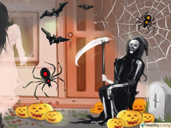 Прикрасьте ганок. ваш ганок стане порталом у світ всього найжахливішого, тому тераса повинна бути максимально моторошною для того, щоб заманити ваших нічого не підозрюють гостей (або жертв) в будинок жахів. Так, можна додати пікантності вашій терасі: Прикрасьте ганок. ваш ганок стане порталом у світ всього найжахливішого, тому тераса повинна бути максимально моторошною для того, щоб заманити ваших нічого не підозрюють гостей (або жертв) в будинок жахів. Так, можна додати пікантності вашій терасі:- Розвісьте по ганку павутину. І гості попадуться в неї.