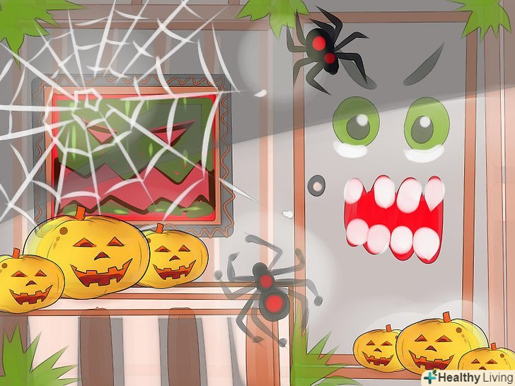 Прикрасьте вхідні двері та вікна. двері і вікна-це очі і рот вашого будинку, тому їм необхідно приділити величезну увагу. Додайте кілька диявольських рис вхідних дверей і вікон – і ваше житло буде схожим на будинок з привидами. Ось що можна зробити: Прикрасьте вхідні двері та вікна. двері і вікна-це очі і рот вашого будинку, тому їм необхідно приділити величезну увагу. Додайте кілька диявольських рис вхідних дверей і вікон – і ваше житло буде схожим на будинок з привидами. Ось що можна зробити:- Постеліть моторошний килимок. Нехай на ньому буде намальована павутина або привид.