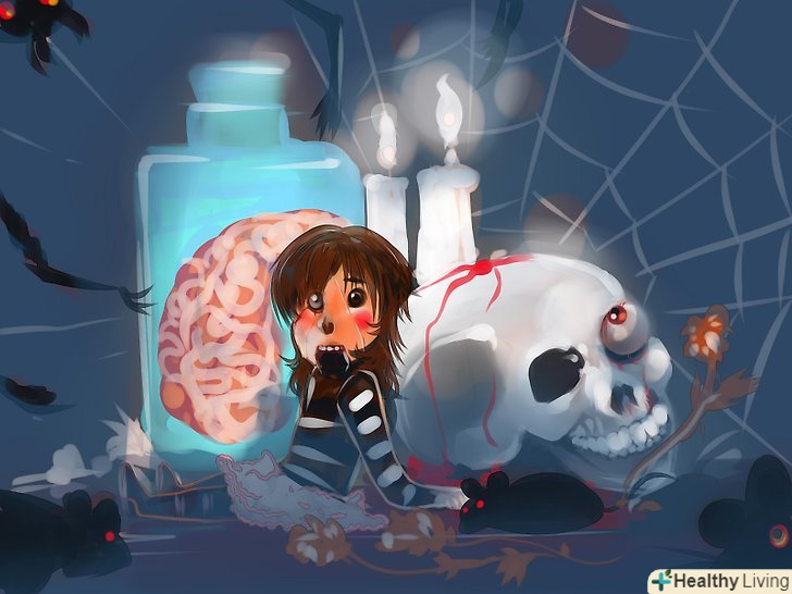 Додайте бутафорні келихи. Візьміть великі скляні келихи, налийте в них воду і додайте в неї кілька крапель зеленої фарби, щоб вода прийняла зелений колір. Поставте келихи на помітно відображає стільницю в кухні або будь-яку іншу відображає поверхню в будинку і запаліть пару свічок. Ось що можна покласти в келихи: [3] Додайте бутафорні келихи. Візьміть великі скляні келихи, налийте в них воду і додайте в неї кілька крапель зеленої фарби, щоб вода прийняла зелений колір. Поставте келихи на помітно відображає стільницю в кухні або будь-яку іншу відображає поверхню в будинку і запаліть пару свічок. Ось що можна покласти в келихи: [3]- Візьміть старі незрозумілі деталі, наприклад, руку ляльки, дитячу іграшку десятирічної давності або випадкові дрібнички, які валялися в будинку роками.