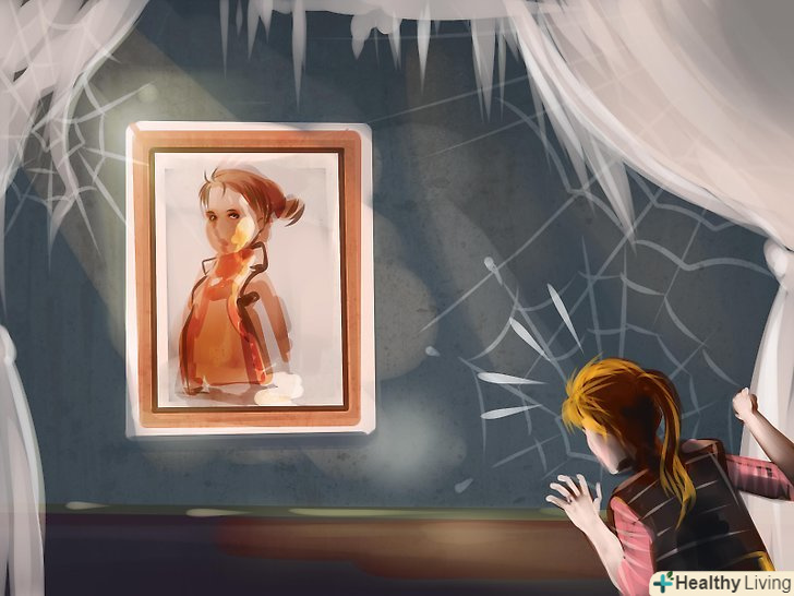 Прикрасьте стіни. стіни дійсно можуть перетворити будинок на щось жахливе. Просто додайте кілька штрихів, і будинок з примарами оживе. Ось що можна зробити: Прикрасьте стіни. стіни дійсно можуть перетворити будинок на щось жахливе. Просто додайте кілька штрихів, і будинок з примарами оживе. Ось що можна зробити:- Накрийте свої картини білою тканиною. Житло буде схоже на»покинутий будинок".