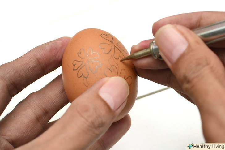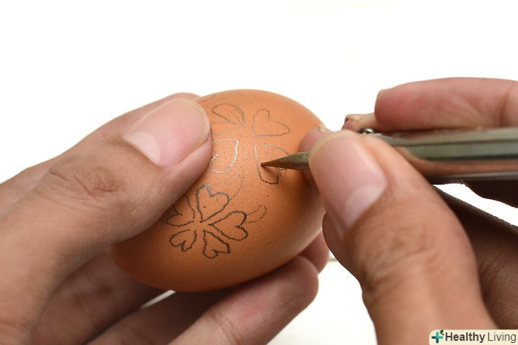 Намалюйте свій візерунок на шкаралупі простим олівцем, майже не натискаючи на нього. Продумайте сполучні елементи свого візерунка, як якщо б ви хотіли вирізати трафарет, інакше малюнок просто провалиться всередину по контуру. Намалюйте свій візерунок на шкаралупі простим олівцем, майже не натискаючи на нього. Продумайте сполучні елементи свого візерунка, як якщо б ви хотіли вирізати трафарет, інакше малюнок просто провалиться всередину по контуру.