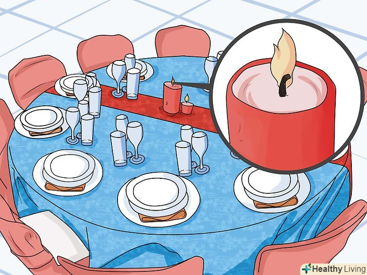 Накрийте стіл (и). організуйте більш приватну обстановку замість того, щоб просто збирати всіх навколо одного довгого столу. По ходу сюжету гостям потрібно буде ділитися ідеями один з одним. Накрийте стіл (и). організуйте більш приватну обстановку замість того, щоб просто збирати всіх навколо одного довгого столу. По ходу сюжету гостям потрібно буде ділитися ідеями один з одним.- Подумайте про те, щоб поставити на стіл(и) свічки [5] для створення таємничої атмосфери.