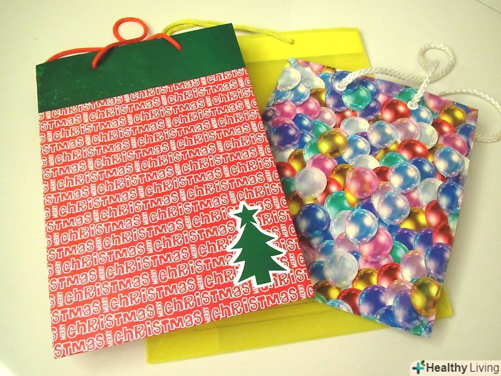 Виготовте паперовий подарунковий пакет. у продажу є подарункові пакети найрізноманітніших стилів, і їх можна використовувати знову і знову. Ви можете самостійно виготовити упаковку для подарунка, прикрасивши самий звичайний паперовий пакет. Можна використовувати паперовий пакет з продуктового магазину, упаковку для ланчу або будь-який інший відповідний пакет. Такій упаковці можна надати неповторний вигляд, а після використання відправити її на вторинну переробку або знищити без шкоди для навколишнього середовища.