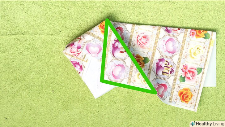 - Залишаючи папір в перевернутому положенні, загніть її внизу праворуч, щоб вона була врівень з правою стороною коробки. вийде ще один трикутник.
