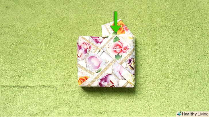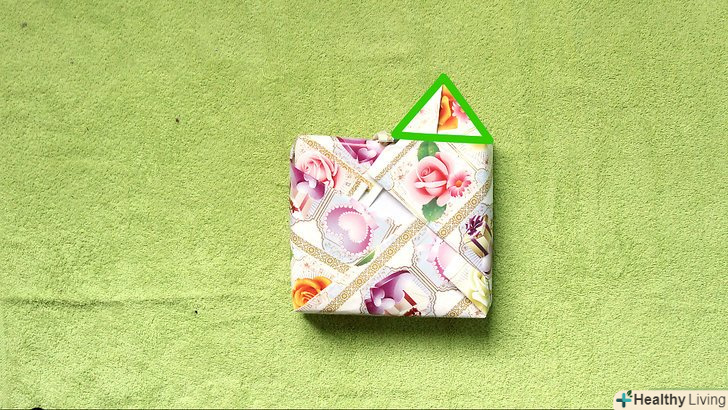 Візьміть папір зліва від складки і закрийте їй складку. переконайтеся, що цей папір повністю закриває складку і знаходиться на одному рівні з нижнім краєм коробки. Закріпіть цей шматок паперу за допомогою клейкої стрічки.- Перейдіть до верхньої частини. складіть папір врівень з верхньою стороною коробки, так, що з решти паперу вийде ще один трикутник. Загніть цю іншу папір. Повинен вийти трикутник.