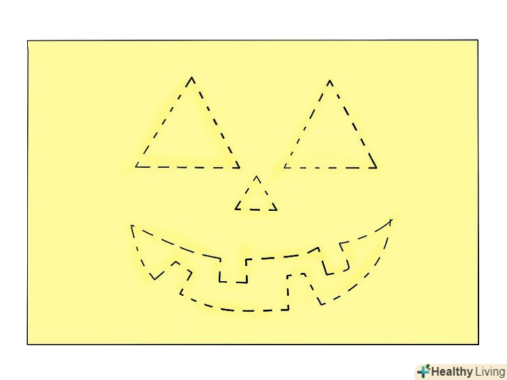 Виріжте частини пики з жовтого пакувального паперу. якщо у вас немає крафт-паперу, скористайтеся самоклеючим папером, картоном або обгорткового папером. Зійде все гнеться і різнобарвне. Виріжте вигнуті злі брови, довгі і підкручені вгору вуса, здивовані очі і інші деталі, які, на вашу думку, повинні бути на пику вашої гарбуза.- Чим простіше риси, тим більше горщик буде схожий на звичайний гарбузовий ліхтарик. Зробіть для нього зубастий оскал, трикутний ніс і трикутні очі, щоб горщик відображав гарбузову пику.