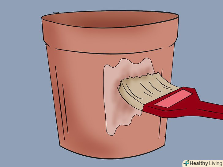 Приклейте частинки пики до горщика, догори дном . притискайте їх міцно. Потім покрийте горщик тонким шаром лаку, щоб захистити його від погодних умов.