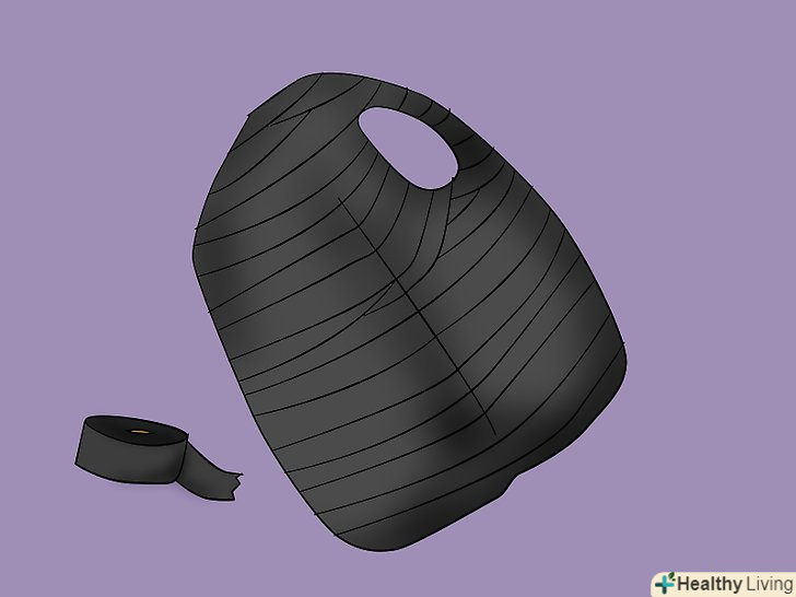 Обклейте глечик чорною ізоляційною стрічкою. тепер це тулуб павука. Ретельно обклейте ручку, але не хвилюйтеся – якщо вона видніється з-під стрічки, все в порядку.