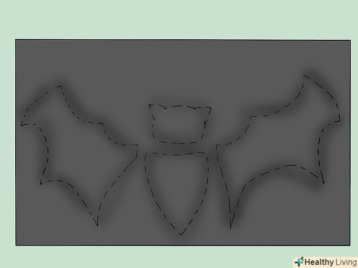 Виріжте з картону тулуб, два крила і голову миші (з вухами! ). Ви можете знайти шаблон в інтернеті або намалювати його від руки. Зробіть тільце більш пухким з боків, таким чином у вас з'явиться місце для приєднання крил, не привертаючи уваги до його розміру.