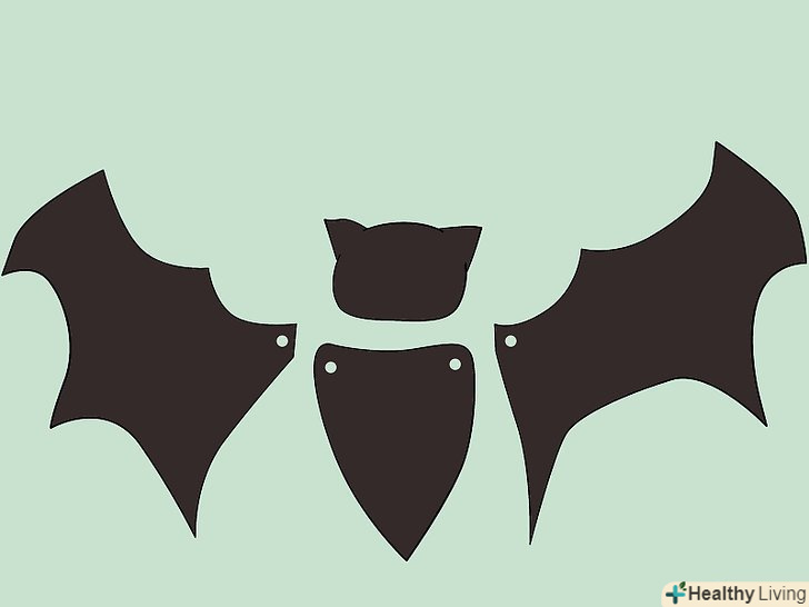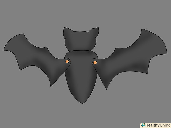 Пробийте кілька дірочок, щоб з'єднати частини кажана. виконайте по два отвори в кожному крилі там, де вони будуть прикріплятися до тулуба. Зробіть отвори подалі від країв, щоб дірочки не розірвалися. Також пробийте отвори в нижній частині тулуба, щоб пізніше прив'язати нитку (в місці, де хвостик).- Отвори повинні бути достатньо великими, щоб протягнути металевий штифтик. Так крила будуть плескати.