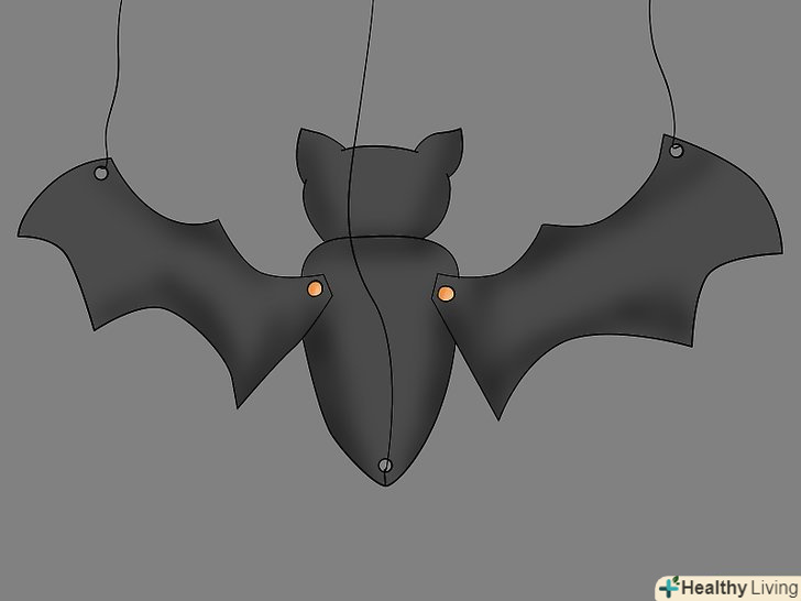 Протягніть нитки в порожні дірочки і зав'яжіть на вузлик. ось чому спочатку ви прокололи крила відразу в двох місцях! Вам знадобиться близько 25 см волосіні (або зубної нитки), щоб її було легко схопити.- Саме так ви будете керувати крилами. Якщо ви хочете, щоб ваша кажан захлопала крилами, потягніть за нитку - і нехай вона летить!