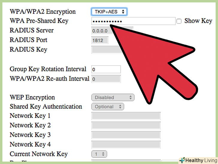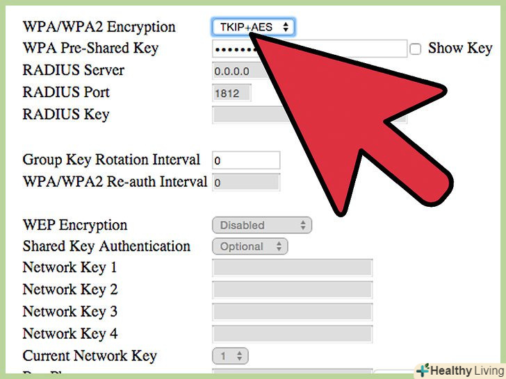 Виберіть шифрування вашої бездротової мережі.це також може називатися "Налаштування безпеки" (Security Options). Тут ви зможете вибрати метод шифрування для захисту вашої мережі. Для більшості роутерів доступні наступні настройки: WEP, WPA-PSK і WPA2-PSK.- WPA2-найнадійніший метод шифрування, його необхідно використовувати, якщо всі ваші пристрої підтримують даний формат. Тільки досить старі пристрої не підтримують WPA2.