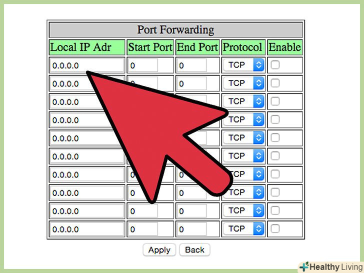 - Внутрішня IP-адреса-це ip-адреса комп'ютера, для якого ви відкриваєте порт. Для того, щоб визначити IP-адресу вашого пристрою, вам необхідно буде ознайомитися з відповідними статтями для комп'ютера під управлінням операційної системи Windows або Mac OS X.