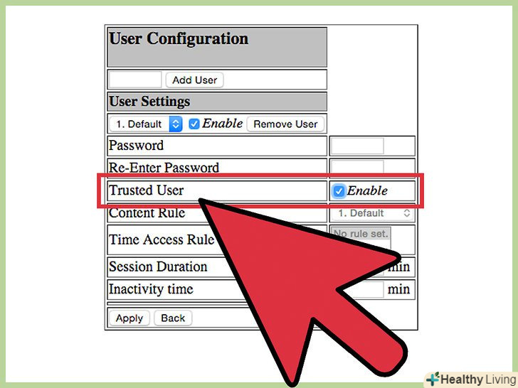 Дозвольте комп'ютерам в довірчій групі доступ до заблокованих сайтів. ви можете відзначити прапорець, щоб внести список довірчих IP-адрес, що мають доступ до заблокованих сайтів. Це може виявитися корисним для батьків, які хочуть мати доступ до сайтів, заблокованих для дітей.- Після того, як ви позначили прапорець, введіть список IP-адрес, які зможуть мати доступ до заблокованих сайтів. Для цього ознайомтеся зі статтею"Як визначити внутрішній IP-адресу комп'ютера".