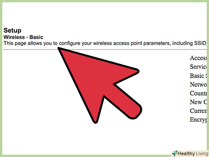 Відкрийте налаштування бездротової мережі. це меню може називатися Бездротова мережа( Wireless), Настройки бездротової мережі (Wireless Settings), Основні настройки (Basic Setup) або подібне. На цій сторінці відображається ідентифікатор SSID, канал, Шифрування та інші налаштування.