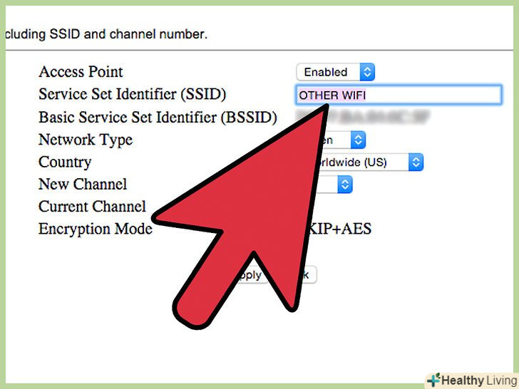 Задайте ім'я мережі. знайдіть поле з позначкою SSID. Це ім'я вашої мережі, яке буде відображатися в списку мереж, доступних для ваших бездротових пристроїв. Не вибирайте в якості імені мережі Ваші персональні дані, так як це ім'я буде видно всім.- Переконайтеся в тому, що прапорець " задіяти SSID передачу "(Enable SSID Broadcast) відзначений.