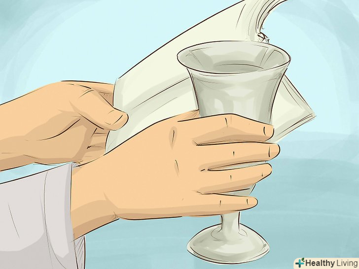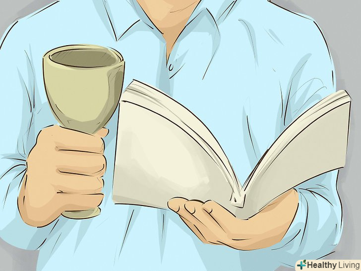 Скажіть кидуш. це благословення, яке вимовляють над вином на честь Великодня. Вимовте кідуш і випийте першу з чотирьох чаш вина. [7]- Після цього можна знову налити в чашу вино, проте поки що не пийте його.
