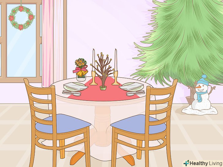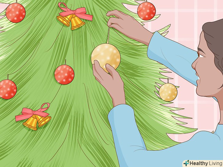 Дістаньте новорічну ялинку і нарядите її. Новорічна ялинка-головний символ цього зимового свята. Зовсім неважливо, чи буде це справжня ялинка або штучна, важливо насолодитися цією новорічною традицією і народити ялинку разом з друзями і рідними. Можна придумати щось тематичне, щоб було цікавіше і оригінальніше. [10]- Звичайно, традиційними вважаються саме живі ялинки, але штучні ялинки набагато популярніші, тому що вони не створюють ризик виникнення пожежі і зіпсованого свята.