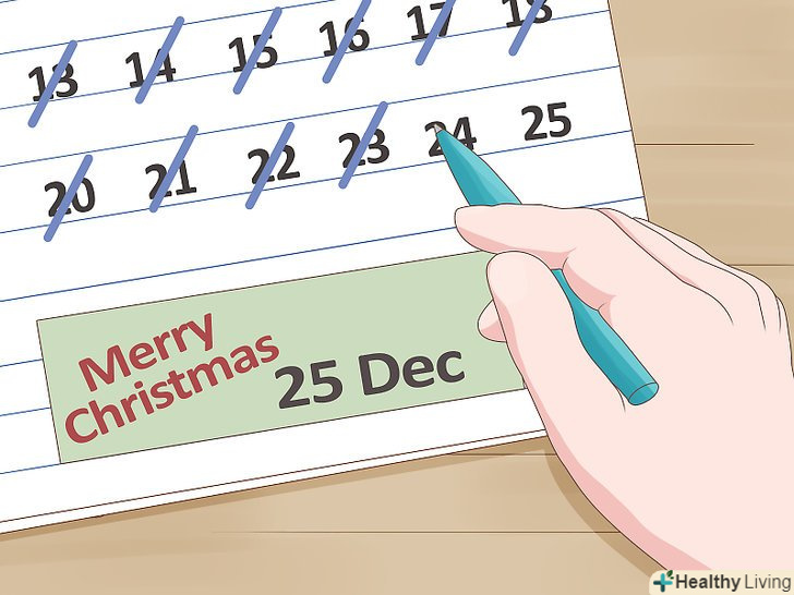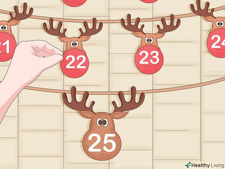 Створіть власний календар Адвенту. Суть календаря в тому, що він «відраховує» дні до Нового року, позначаючи кожен день шматочком шоколаду. Такі календарі можна знайти в продуктових магазинах або замовити по інтернету. Такий календар виглядає, як картонна коробочка з невеликими осередками, в яких лежить шоколад. Кожен день потрібно розкривати по одному осередку (весь грудень) до самого Нового року. Включіть уяву і придумайте власний календар з солодощами на кожен день. Можна кожен день відзначити маленьким шматочком шоколадки або якийсь хорошою цукеркою. Таким чином, кожен день стане для вас приємним сюрпризом. [17]
