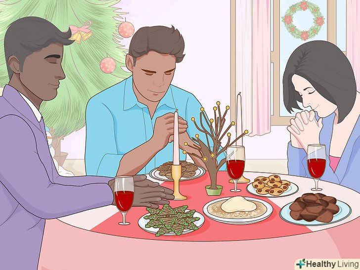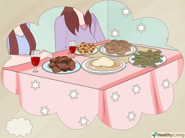 Організуйте сімейну вечірку. у багатьох сім'ях існує така традиція, обов'язково відправте запрошення родичам заздалегідь і повідомте, коли буде новорічна вечірка. Складаючи список запрошень, враховуйте будь-які конфлікти між членами сім'ї, щоб уникнути неприємних і незручних ситуацій. Залежно від того, скільки людей ви збираєтеся запросити, обов'язково продумайте меню, рецепти і страви, якими ви збираєтеся пригощати гостей. [18]- Якщо ви збираєтеся запросити багато гостей, варто заощадити час і сили, попросивши родичів і друзів принести деякі страви з собою. Не забудьте зберегти список, щоб бути впевненим, що кожному гостю дістануться частування, і ніхто не забуде принести деякі страви з собою.