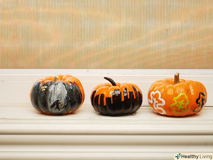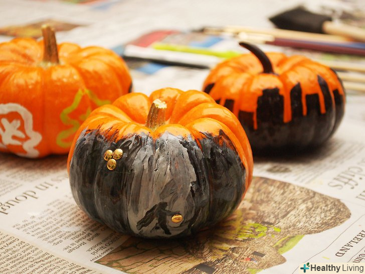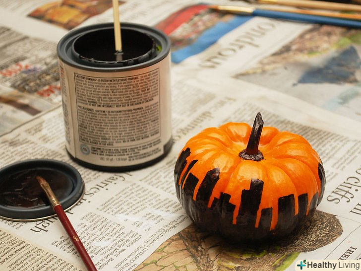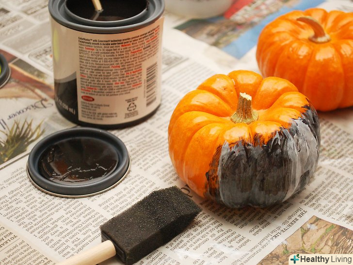- Фарбуйте гарбуз по частинах, даючи кожній частині просохнути, перш ніж приступати до іншої. Так у вас не виникне проблем, як тримати і фарбувати гарбуз, щоб не змастити фарбу.