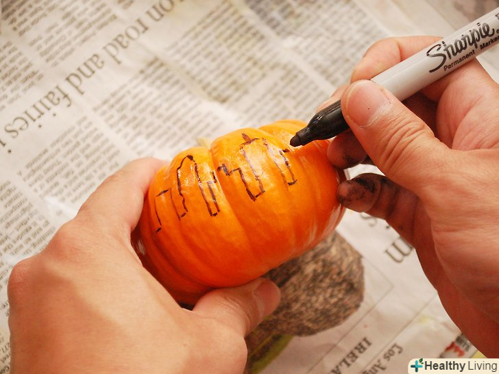 - Переконайтеся, що малюнок покриває всі видимі частини гарбуза, а не просто нанесений спереду. Відійдіть на кілька кроків назад, щоб краще оцінити видимість.