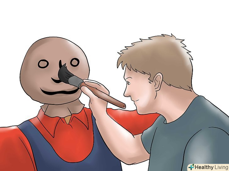 Забезпечте лякало рисами обличчя. ви можете це зробити, використовуючи нескінченну кількість матеріалів. Вирішіть, яке саме буде ваше лякало-усміхнене і щасливе або похмуре і грізне. Ось кілька ідей:- Намалюйте чорним маркером очі, ніс і рот.