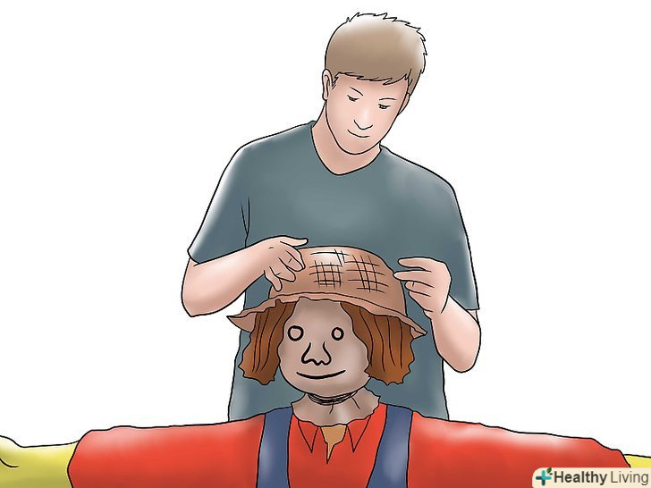 Забезпечте лякало волоссям. Наклейте на голову трохи соломи для створення ефекту волосся. Чи не намагайтеся робити це акуратно, в кінці кінців, лякало повинно виглядати страхітливо. Ви також можете використовувати стару перуку або стару швабру.