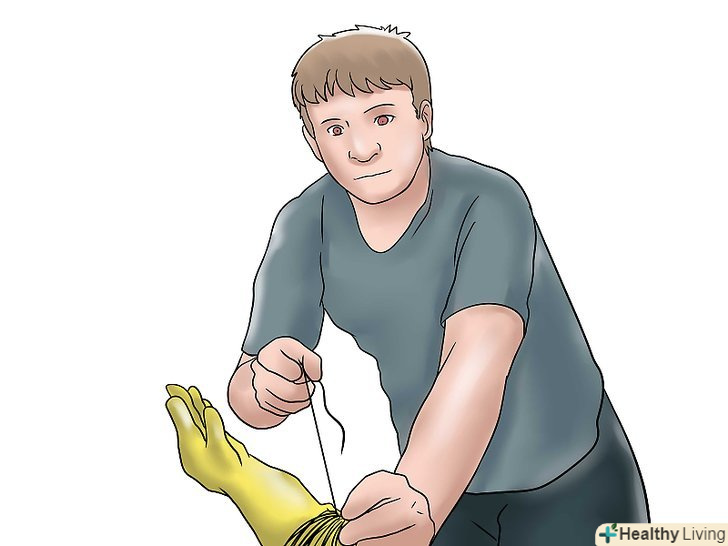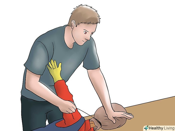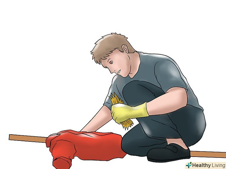 Зробіть руки. у старомодних рукавах сорочки просто стирчала солома, але щоб зробити більш реалістичну людську форму, ви можете використовувати старі робочі або садові рукавички. Заповніть рукавички набиванням, щоб вони тримали форму, заправте в них кінці сорочки і закріпіть дротом або шпагатом.