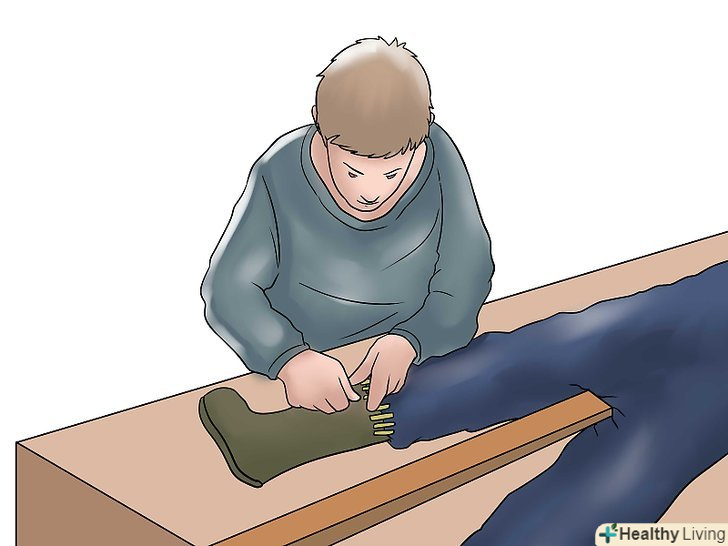 Зробіть ступні. всуньте штанини в старі робочі чоботи або інше взуття. Закріпіть мотузкою (її необхідно вшити в кожен компонент) або гарячим клеєм.- Ви також можете спробувати застосувати двосторонню клейку стрічку для закріплення чобіт.