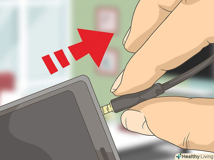 Зменшуйте гучність звуку аудіопристрою, перш ніж підключати навушники.підключення навушників до працюючого на великій гучності аудіопристрою може пошкодити їх. Зменшуйте гучність звуку перед підключенням навушників і не надягайте їх на себе, поки вони не будуть підключені.[2]- Підключивши навушники, надіньте їх і збільште гучність до комфортного для вас рівня.