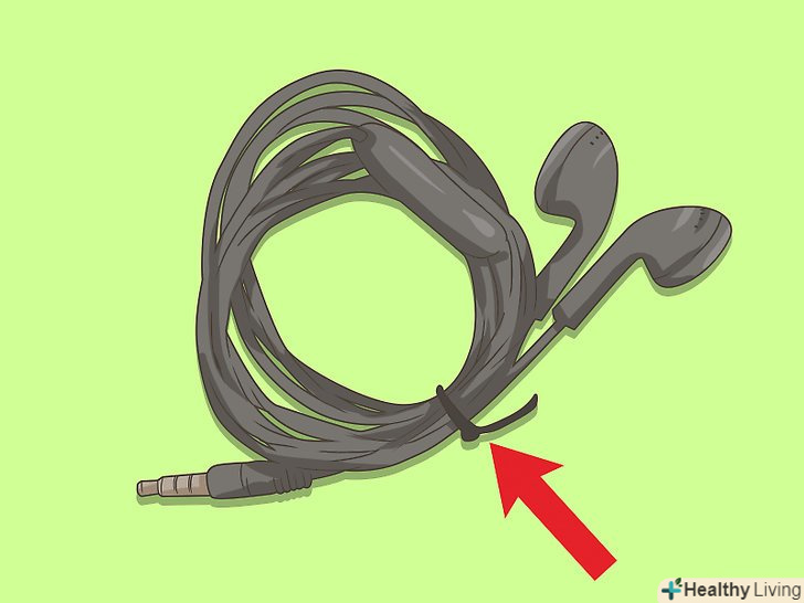 Якщо не користуєтеся навушниками, зберігайте їх кабель в змотаному стані.це особливо важливо для портативних навушників без плетеної обмотки на кабелі. Якщо кабель заплутається або сильно перегнеться, то цілісність проводів всередині може порушитися. Не варто тримати навушники зім'ятими в кишені.- Можна використовувати спеціальний фіксатор для змотаних проводів або просто зробити виїмки на старій використаної подарунковій карті, щоб надійно намотати не неї провід.