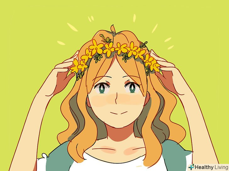 Зробіть вінок з квітів. Зберіть квіти в саду або купіть в квітковому магазині. Вибирайте ароматні квіти з тонкими стеблами. Як зробити вінок: [3]- Візьміть першу квітку і акуратно розділіть стебло надвоє по довжині на висоті приблизно двох третин довжини стебла, щоб вийшов невеликий отвір. Отвір повинен бути не дуже великим. Досить, щоб в нього проходив інший стебло.