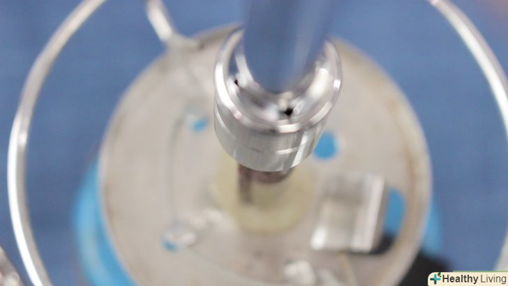 Прикрутіть до балона з гелієм вентиль. такий вентиль являє собою металеву трубку з різьбленням на одному кінці і соплом на іншому. Кінець з різьбленням щільно накручується на шийку балона. [4]