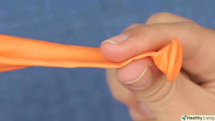 Розімніть кульку — розтягніть його в різних напрямках. перш ніж надувати гумовий кульку, розімніть його руками, щоб вам було легше накачати його ротом. При розтягуванні латекс розм'якне і буде легше розширюватися під тиском повітря. [1]- Розтягуйте кульку в різних напрямках і будьте обережні, щоб не порвати його. Не розтягуйте гуму занадто сильно, інакше кулька може лопнути при накачуванні. Досить трохи розтягнути кульку в різні боки.