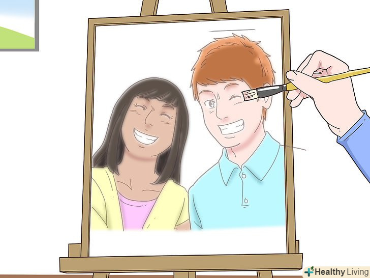 Намалюйте портрети один одного аквареллю. дитячі набори з акварельними фарбами коштують дешево, і в них входить одна або дві кисті. Їх можна знайти у відділі з канцелярією в звичайному супермаркеті, наприклад в» перехресті «або»Ашані". [15] для малювання не потрібна якась спеціальна папір. Відмінно підійде звичайний папір для принтера! Дайте їй висохнути і повісьте роботу туди, де будете бачити її кожен день.- Не переживайте, якщо ви погано малюєте. Як правило, від акварельних фарб залишаються розлучення і ними важко малювати акуратно, тому, в кінцевому підсумку, людина на картині може мало походити на вашого партнера! Це нормально. Адже головне-це сама ідея.