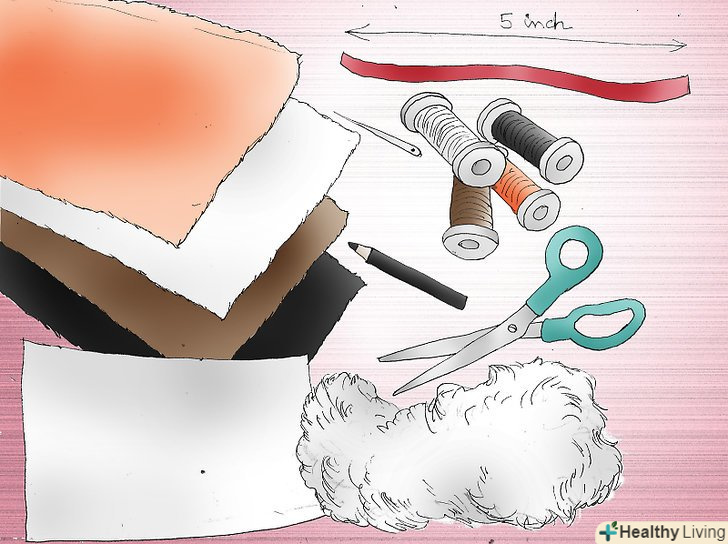 Приготуйте необхідні матеріали. щоб зробити сніговика з повсті, вам знадобиться шматочки білого, коричневого, оранжевого і чорного повсті. Також, вам знадобиться шматочок білої стрічки (приблизно п'ять дюймів в довжину), швейна голка і нитка (колір нитки повинен відповідати кольору повсті), ручка, ножиці, волокнистий наповнювач з поліестеру і аркуш паперу.