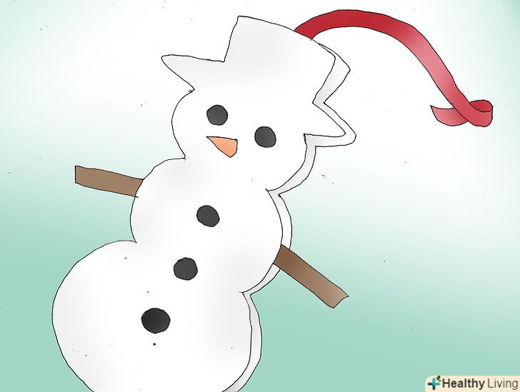 Виріжте тулуб сніговика. намалюйте обриси сніговика на аркуші паперу. Зробіть сніговика будь-якої форми: з двох-трьох овалів, товстого, худого. Все залежить від ваших уподобань.- Виріжте сніговика по контуру, потім покладіть його на шматочок білого повсті.
