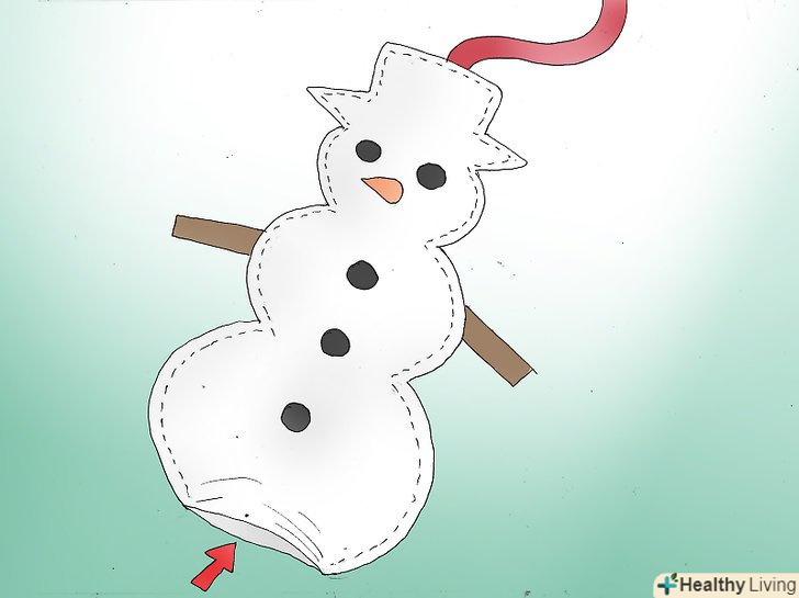 Наповніть сніговика. Візьміть волокнистий наповнювач з поліестеру і набийте їм сніговика, щоб він став красивим і пухкеньким. Як тільки ви закінчите це заняття, потрібно повністю прошити сніговика. Повісьте вашого чудового сніговика з повсті на ялинку і насолоджуйтеся творінням своїх рук! [5]