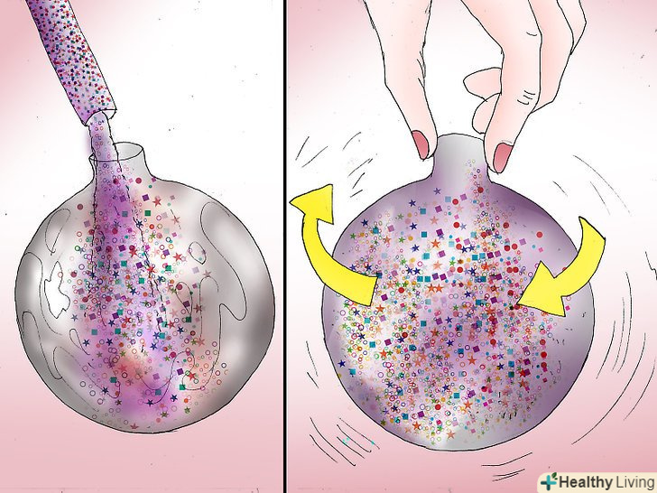 Видаліть верхівки і занурте їх в мастику для натирання підлоги. акуратно видаліть верхівки зі скляних прикрас (ви ж не хочете їх пошкодити) і налийте невелику кількість мастики для натирання підлоги або обробки на скляну кулю.- Це може звучати дивно, але саме таким способом ви можете зробити внутрішню сторону кулі блискучою. Переконайтеся, що використовуваний продукт має суху акрилову основу.