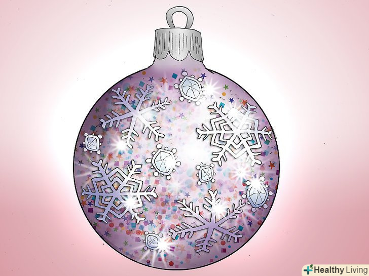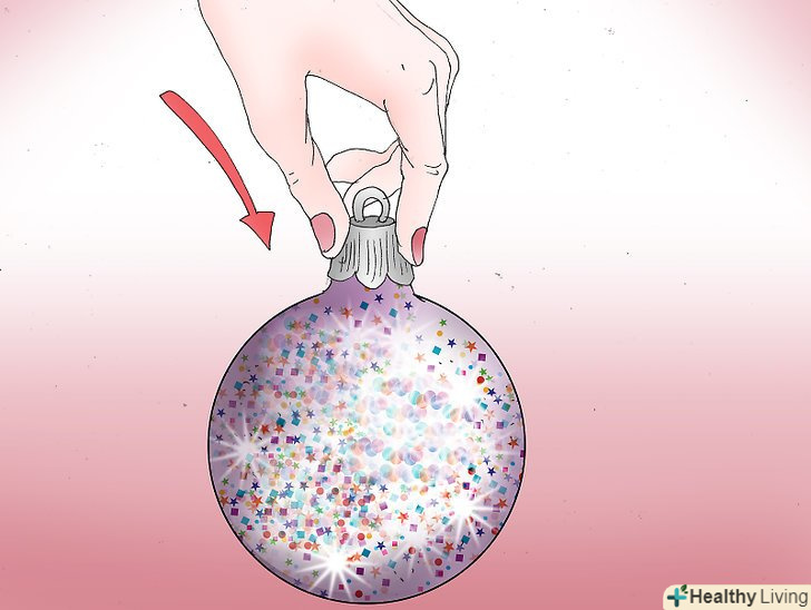 Виберіть кілька різнокольорових кульок. Нанесіть достатню кількість блискіток на скляну поверхню і покрутіть так, щоб блискітки покрили всю зовнішню поверхню прикраси. Струсіть зайве в коробочку з блискітками.- Можна вибрати будь-який колір на свій смак: золотистий, червоний, блакитний, Зелений, фіолетовий. Вибирайте ті кольори, які збігаються з колірною гамою вашого Різдвяного дерева.