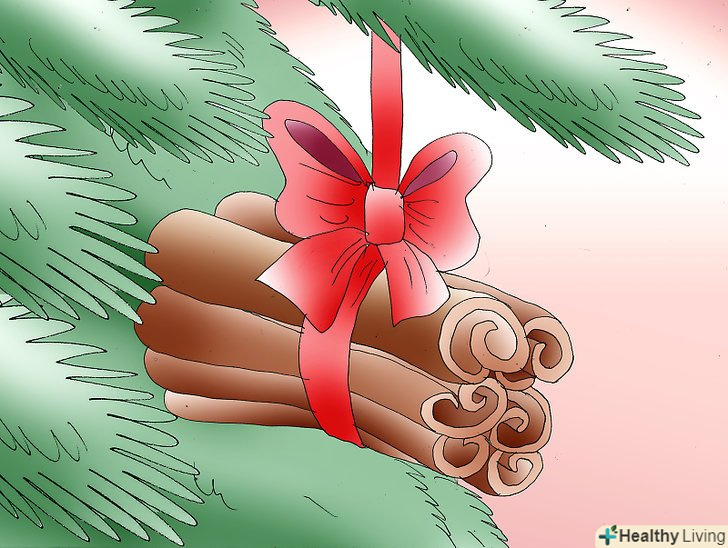 Приготуйте пучки кориці. Візьміть п'ять-шість паличок кориці і зробіть з них пучок. Перев'яжіть його червоною або зеленою стрічкою і зав'яжіть зверху бантик. Повісьте на різдвяне дерево, і у вас вийде красиве і ароматне прикраса!