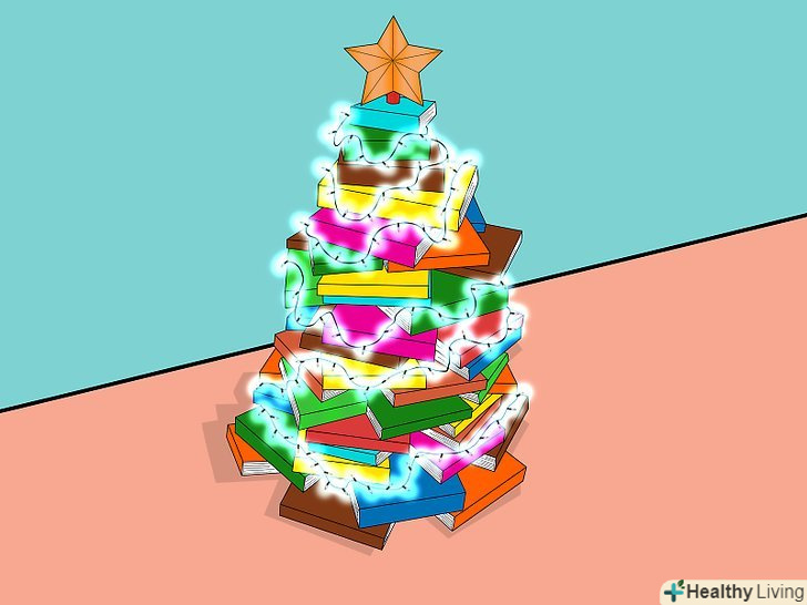 Зробіть міні-ялинку з книг. Якщо у вас в будинку є книголюб, подаруйте цю ялинку йому або зробіть книжкову ялинку для себе замість традиційного великого дерева.