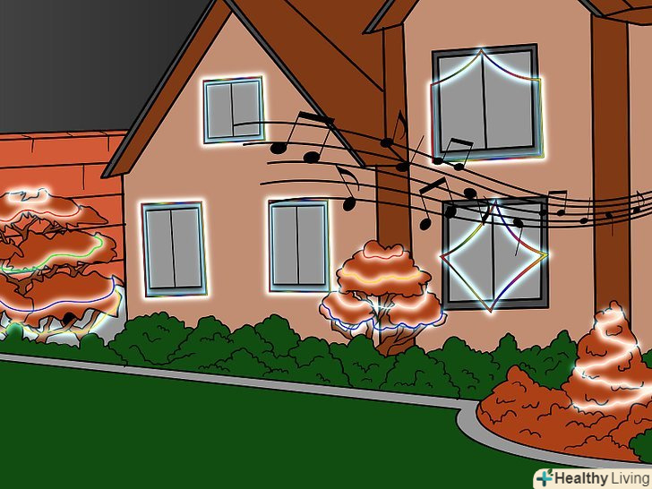 Якщо використовуєте електричні новорічні гірлянди, зробіть так, щоб вони блимали під музику. ви можете зробити так, щоб вогники блимали під певну пісню або навіть під ціле безліч пісень! (Тільки пам'ятайте про вуличний шум).