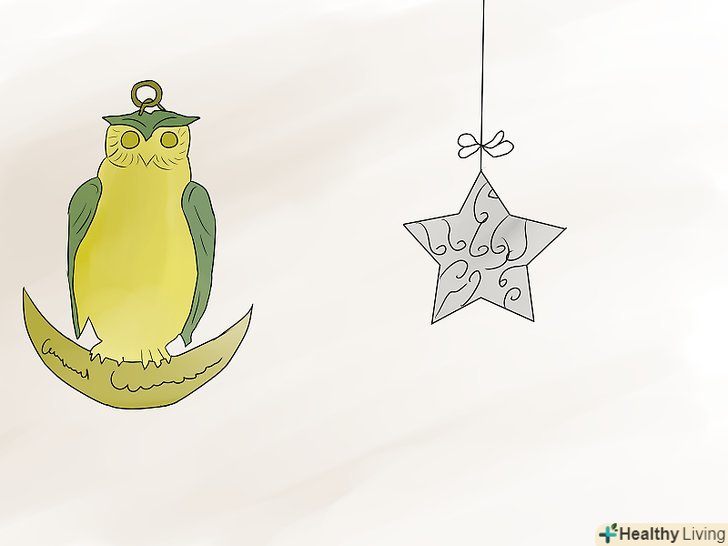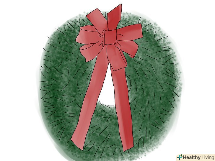 Декорований вінок. існує неймовірна безліч варіантів новорічних і різдвяних вінків – приклеїти до основи для вінка фрукти або горішки, обернути її тканиною, густо прикрасити кульками, – але все ж класичним залишається вінок з хвойних гілок, живих або штучних. Купіть такий вінок, а потім не обмежуйте свою фантазію. Ви можете прикріпити на вінок картки з іменами членів сім'ї, на пластикових паличках увіткнути в нього квіти, листя або фрукти.- Можна прикрасити вінок подібно до того, як ви прикрашаєте ялинку, тільки іграшки варто не вішати, а примотати за петельку прямо до гілок. Зупиніться на парі-трійці розмірів і кольорів, щоб вінок виглядав професійно зробленим.