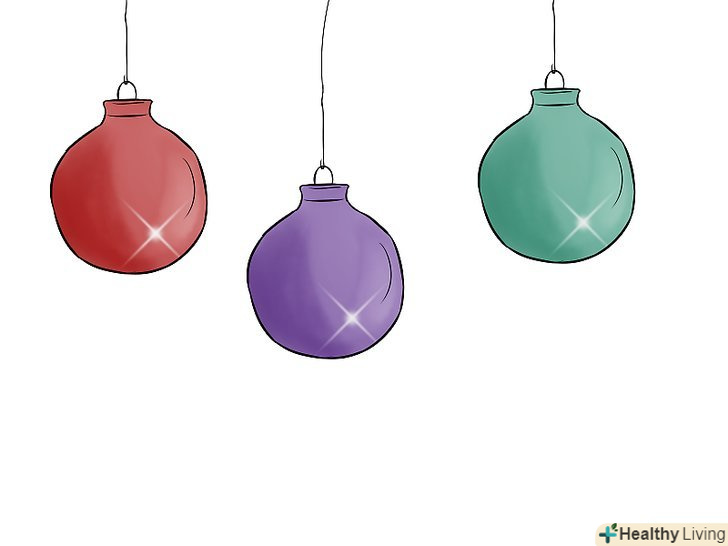 Прозорі кулі з предметами всередині. такі кулі з простого прозорого скла або пластику досить дешеві і добре виглядають самі по собі, але ще краще підходять для декорування. Закрийте кулю зверху (або скріпіть, якщо він роз'ємний) і прикріпіть стрічку.- Помістити всередину кулі якийсь предмет-всього один з варіантів декору. Ви можете спорудити цілу сцену, насипавши в кулю штучного снігу і помістивши туди мініатюрну ялинку або сніговика, або ж взяти фарбу з блискітками і розписати куля візерунками. Дайте волю своїй фантазії!