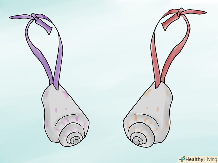 Прикраси з черепашок. Черепашки – самі по собі витончена прикраса, досить приклеїти до них петельку з золотого або срібного шнура, але і прикрасити черепашку теж легко. Нанесіть на одну або обидві сторони черепашки прозорий клей, а потім густо обсипте блискітками (глітером), щоб вона виблискувала і переливалася. Покрийте клеєм і глітером тільки окремі ділянки, щоб блискуча і матова поверхня чергувалися, або зробіть тонку блискучу лінію, що підкреслює спіраль черепашки.